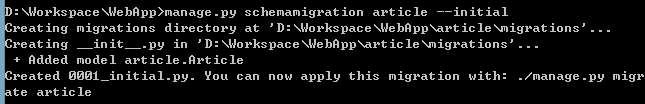 schemamigration 其功能是比較程式中model欄位版本的差異,真正要將model --> table需要使用以下指令